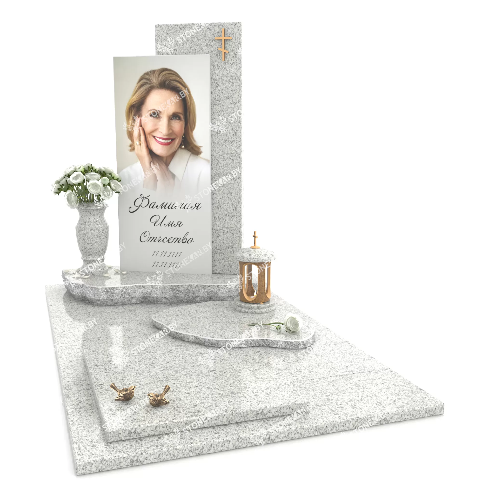 Основа памятника выполнена из высококачественного гранита, доступного в разных вариантах, чтобы удовлетворить индивидуальные пожелания и предпочтения. Мы предлагаем разные виды гранита, включая черный, серый, белый, розовый и красный гранит. Каждый из них обладает своей уникальной текстурой и цветом, что позволит Вам подобрать идеальный вариант для создания памятника.